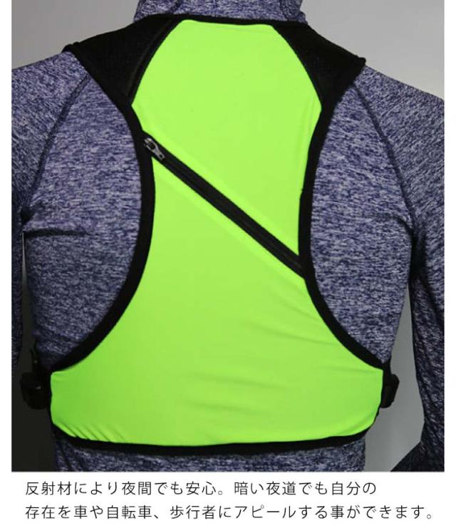 | 超軽量、高通気性素材を採用した、最低限の物をもってランニングするときに便利なベストバッグ。 前面に複数のメッシュポケット、後ろ部分にジッパー付きポケット付き。 軽量で柔らかい素材なので快適な着心地なのでエクササイズの邪魔をしません。 反射材により夜間でも安心。暗い夜道でも自分の存在を車や自転車、歩行者にアピールする事ができます。 サイドの調節ストラップは、前にひいて調節するようになったので、より簡単にアジャストすることが可能です。 胸部分の固定ベルト付いて安定感もバツグン!身体にしっかりフィットし、揺れなどもほぼないのでランニング時とても楽です。 | |