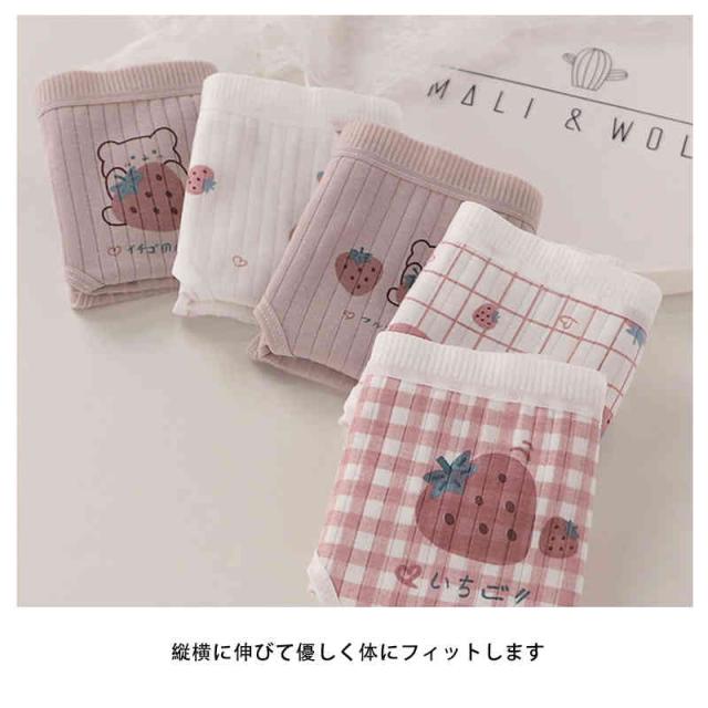 レディース 5枚セット ショーツ いちご 可愛いショーツ スタンダード コットン 下着 シンプル かわいい パンツ 高校生 スタンダードショーツ