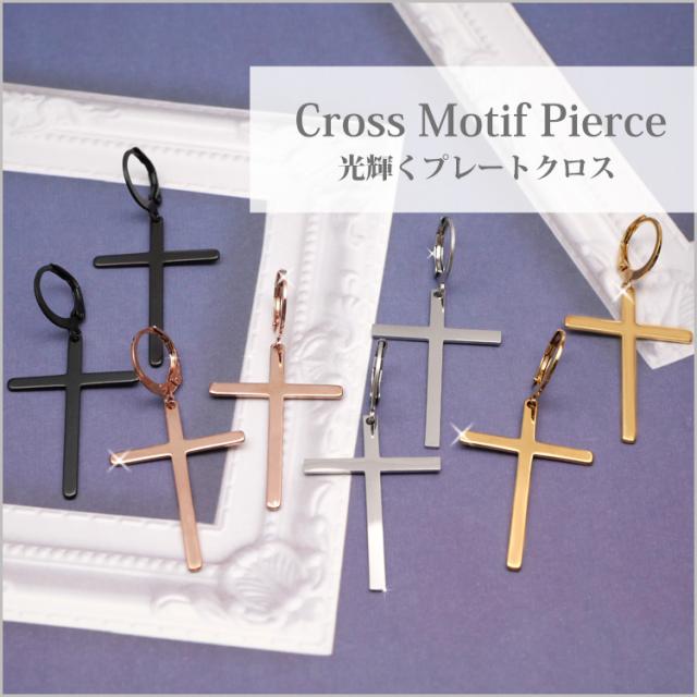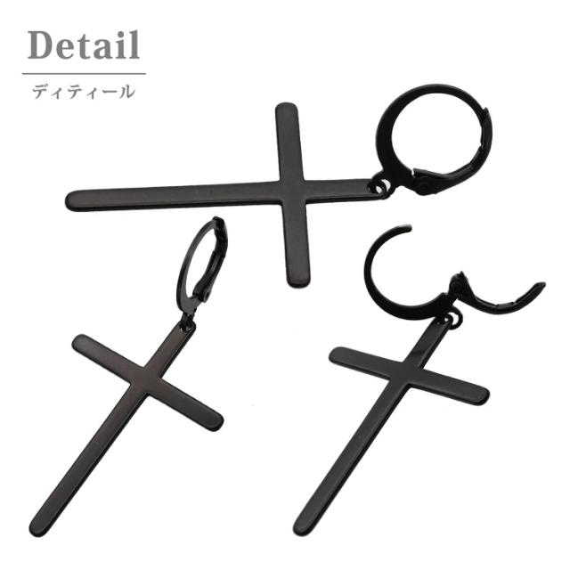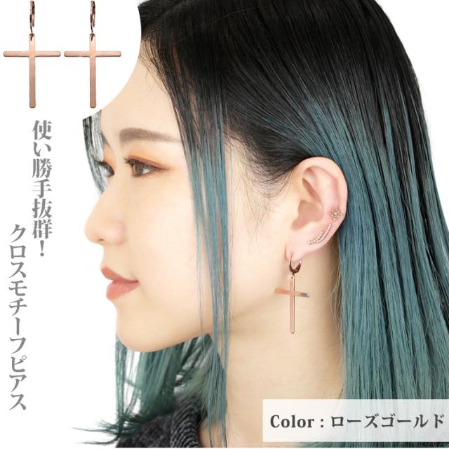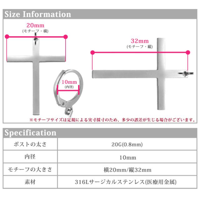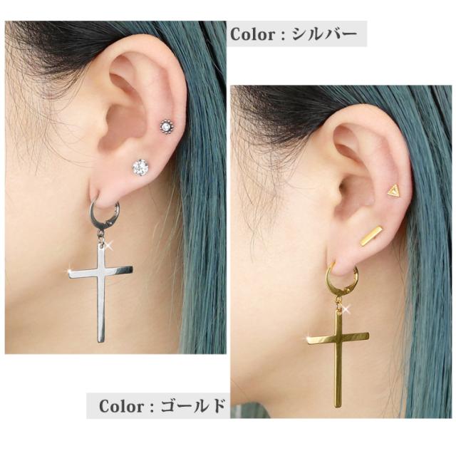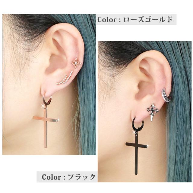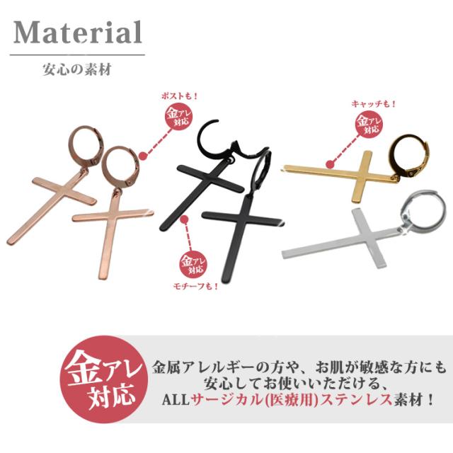 金属アレルギー対応 ステンレスピアス クロスモチーフピアス フープピアス 両耳用 316L サージカルステンレス