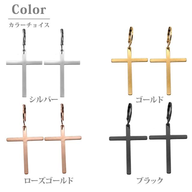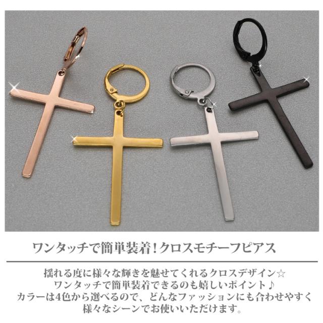 揺れるたびに様々な輝きを魅せてくれるクロスデザイン。 ワンタッチで簡単装着できるのも嬉しいポイント。 カラーは定番のシルバー・ゴールド・ローズゴールド・ブラックの4カラーをご用意。
