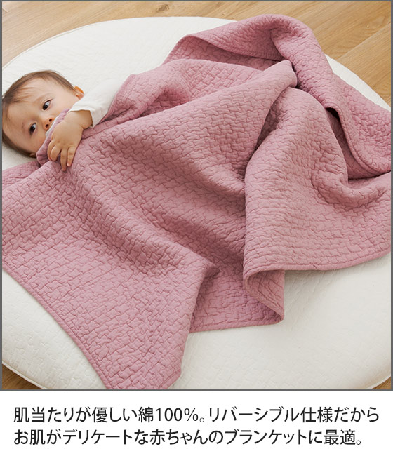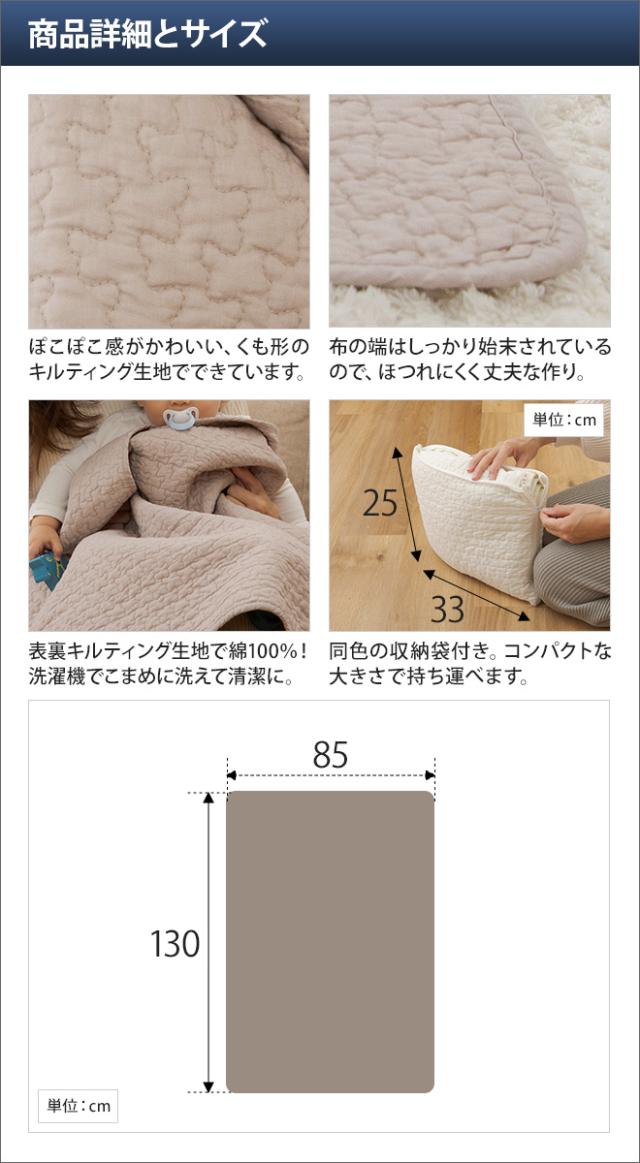 もこもことしたキルティング生地が可愛いイブルのおむつ替えシートにもなるブランケット。