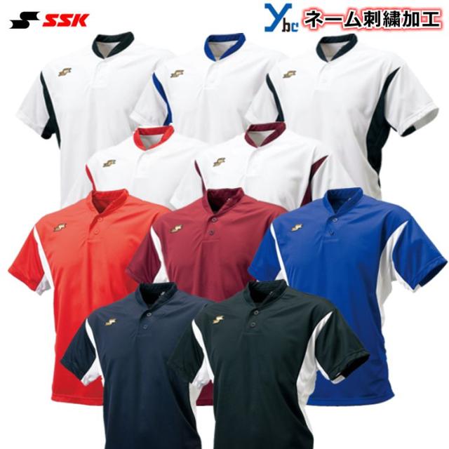 【左片胸刺繍 袖刺繍加工】 SSK 野球 ウェア 半袖 2ボタンTシャツ BT2280 ユニセックス 刺繍 大人用 お揃い 移動着 チームウェア ybc 2019