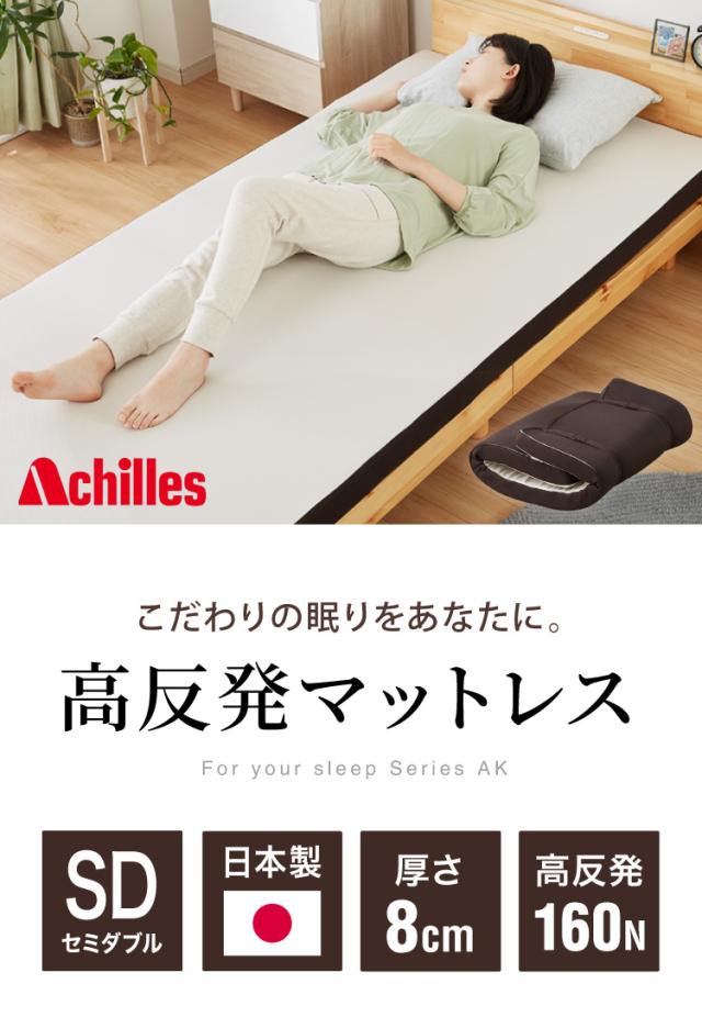アキレス 日本製 高反発 マットレス セミダブル メッシュ 折りたたみ ニット生地 厚さ8cm シングルマットレス ウレタン 国産 ノンコイル 硬め 体圧分散 寝返り(代引不可)【送料無料】