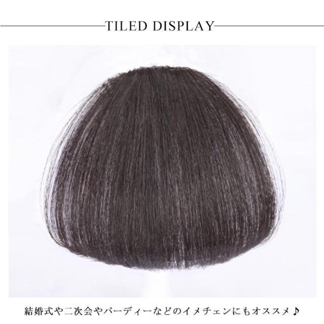 | ワンタッチクリップで装着可能な前髪ウィッグ。 通気性がよい、軽くて薄く、付けても重くならないので地毛と馴染みやすい! 自分好みのアレンジが簡単に実現。 結婚式や二次会やパーディーなどのイメチェンにもオススメ♪ | |