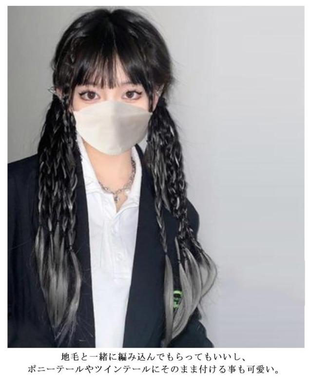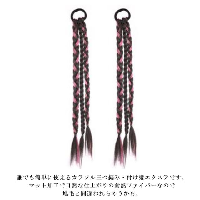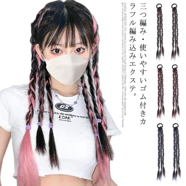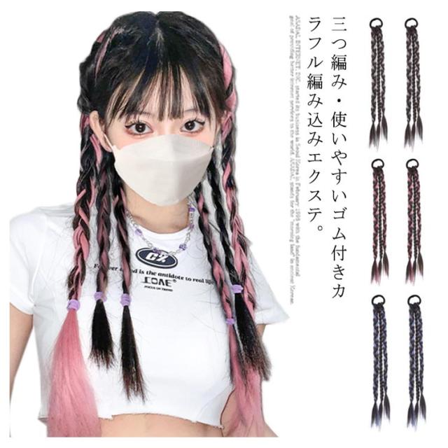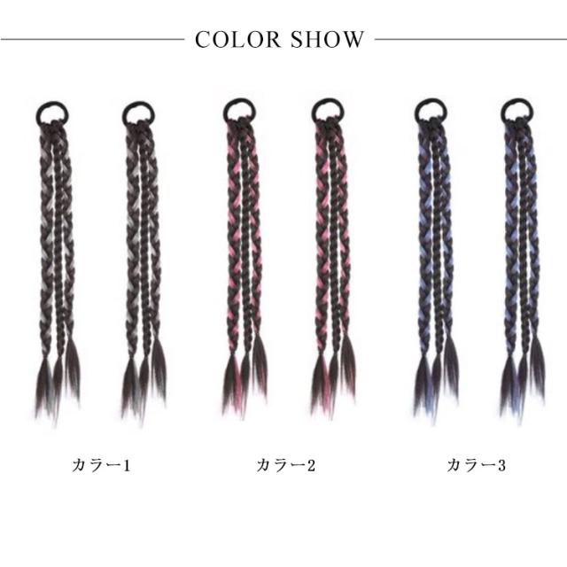 送料無料 かんたん装着 ゴム付き 三つ編み エクステ カラフル編み込み ウィッグ ポニーテール つけ毛 エクステウィッグ ポイントウィッグ へアゴム ロング ウィッグ かわいい 大人 子供 キッズ ガールズ ヘアアクセサリー 髪飾り 毛束 派手 ハロウィン コスチューム