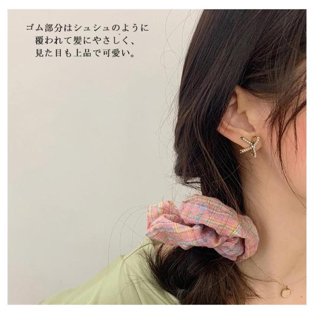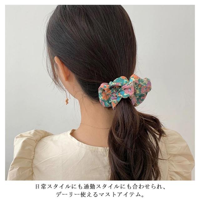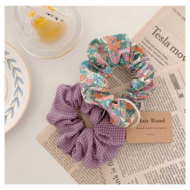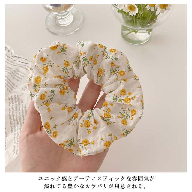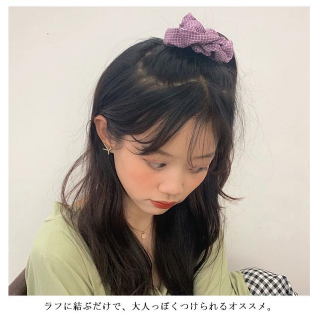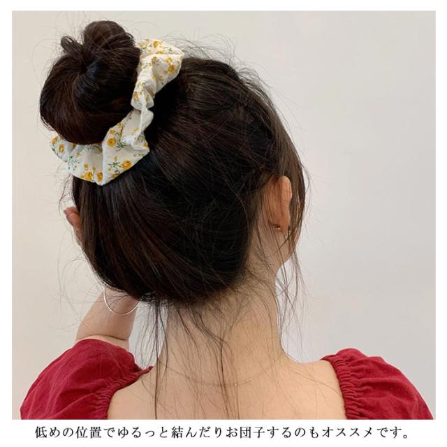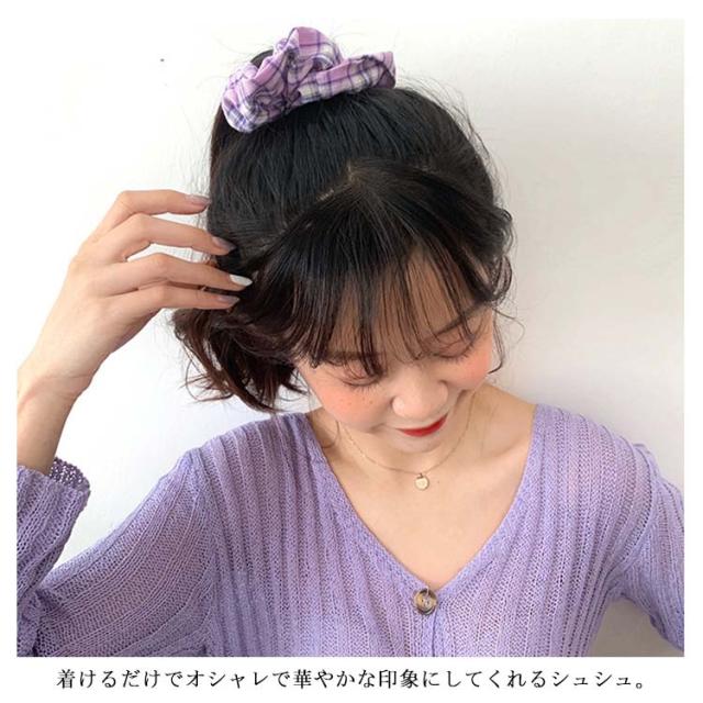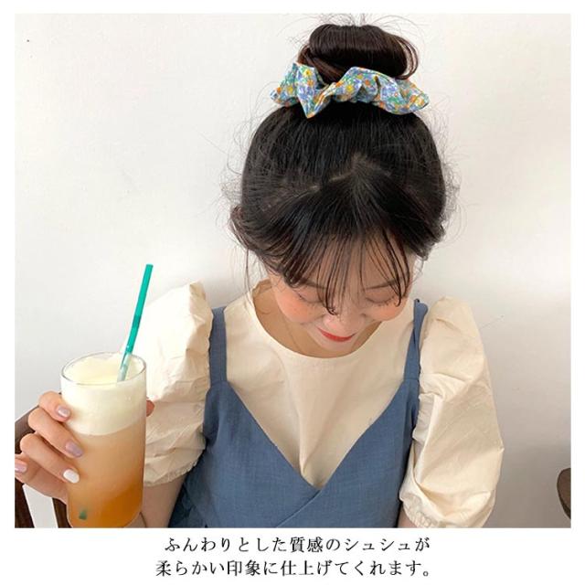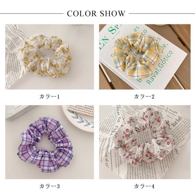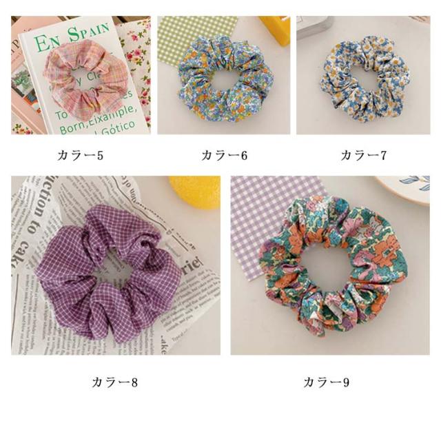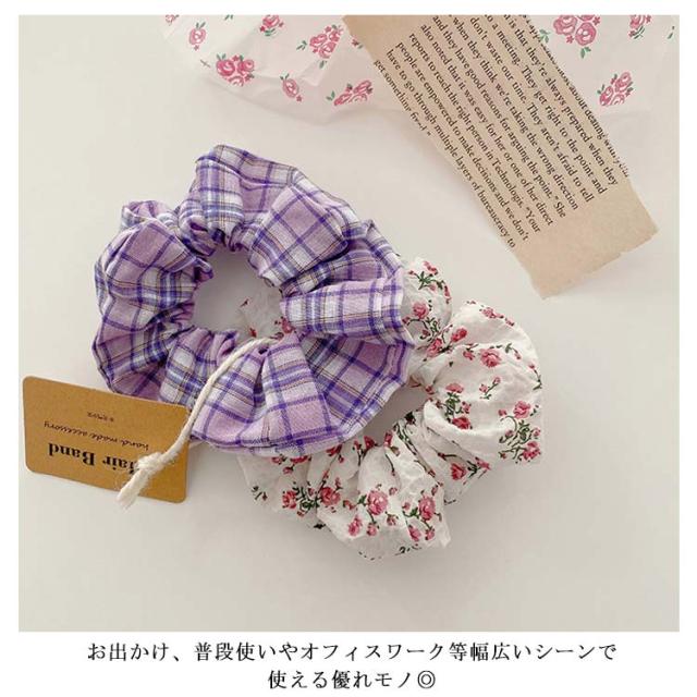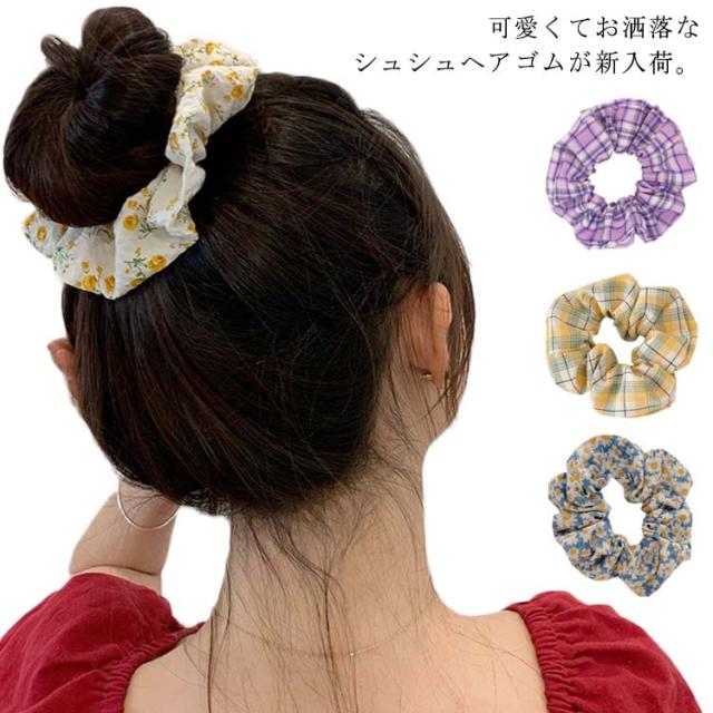 送料無料 2本セット シュシュ ヘアアクセ ヘアゴム ヘアアクセサリー しゅしゅ 小花柄 チェック柄 ボリューム 大人 かわいい ヘアポニー 簡単アレンジ 髪飾り 髪留め 通勤 通学 シンプル 女性 プレゼント ギフト