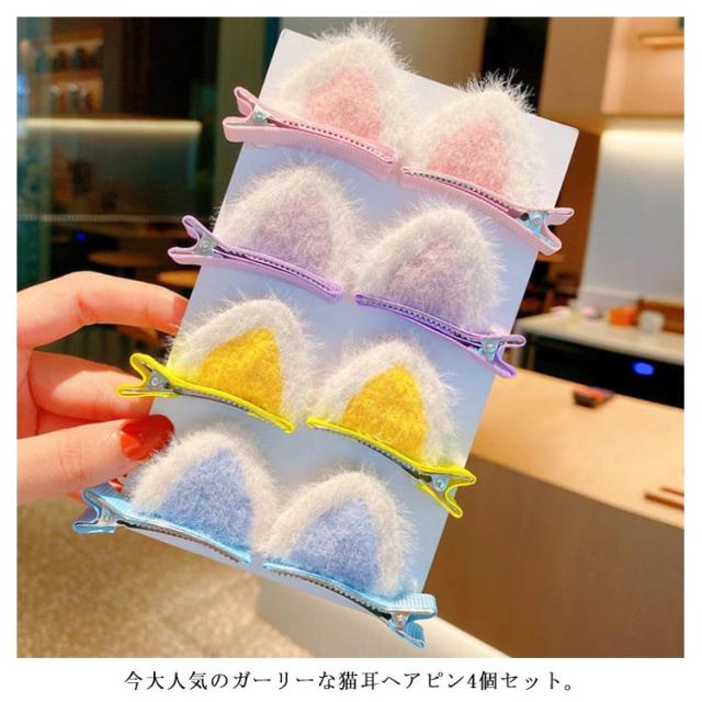 送料無料 猫耳ヘアピン 4個セット 子供 パーティー ヘアクリップ 髪飾り キュート 猫耳 コスプレ ネコ ヘアピン ヘアアクセサリー アレンジ ハロウィン 誕生日会 ヘアアクセ 髪留め ヘアアレンジ シンプル パッチンどめ キッズ 女の子 大人 オシャレ ギフト