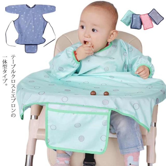 ベビー用 お食事エプロン テーブルクロス一体型 子供 防水 長袖 赤ちゃん キッズ スタイ 食べこぼし よだれかけ 保育園 おしゃれ 折りたたみ コンパクト 離乳食 男の子 女の子 幼児 ビブ ベビー用品 0歳 1歳 2歳 送料無料