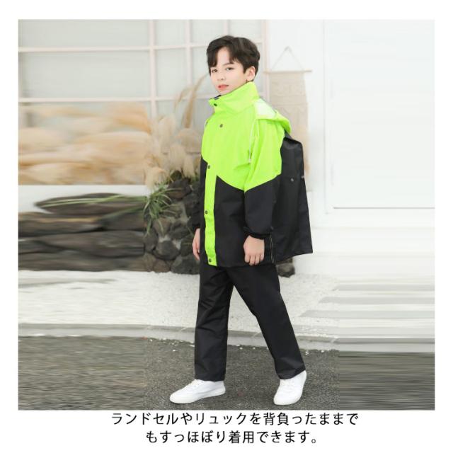 レインスーツ キッズ レインコート ランドセル対応 レインウェア キッズ 防水 軽量 上下セット レインパンツ レインパーカー 子供用 小学生 中学生 雨具 カッパ 合羽 レインスーツ 通学 自転車 アウトドア 遠足 反射材 梅雨対策 収納袋付き