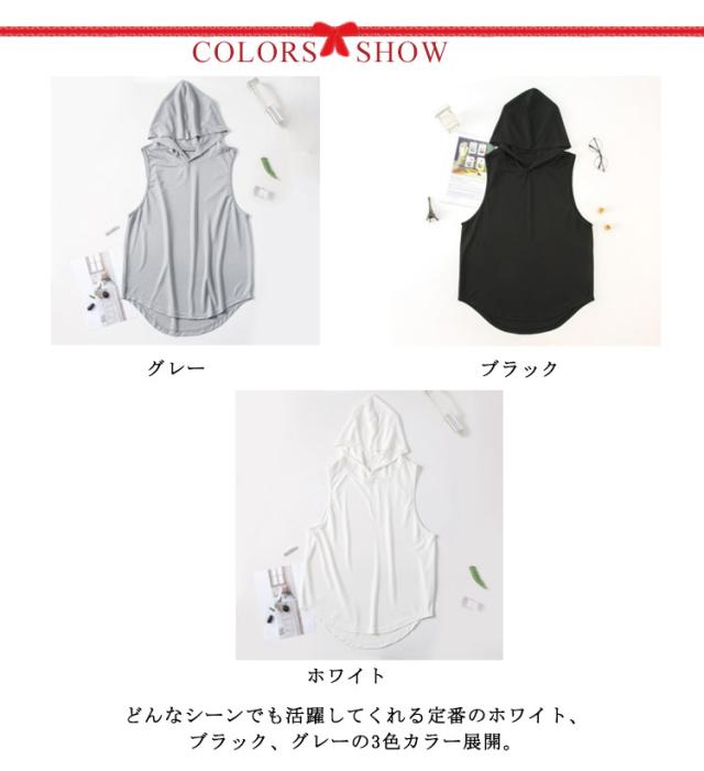 | 3color!ノースリーブプルオーバーパーカー。 抜群の清涼感が暑い春夏シーズンも快適な着心地を演出する袖なしパーカー! どんなシーンでも活躍してくれる定番のホワイト、ブラック、グレーの3色カラー展開。 で無駄な装飾のないシンプルなデザインで使い勝手も抜群! ポリエステル100%仕様て、薄く、軽く、速乾性に優れた素材てす。 通気性の良いメッシュ生地を使用し、べたつかずサラッとした快適な着心地て柔らかい肌触りが特徴てす。 | |