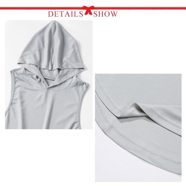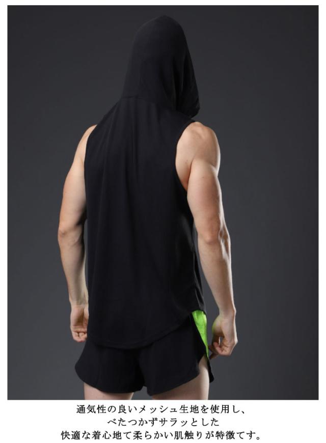 ノースリーブ パーカー メンズ タンクトップ メッシュ フード付き スポーツウェア ノースリーブパーカー 無地 バスケットボールウェア トレーニング ジム ランニング 通気 夏 夏物 ブラック ホワイト グレー 白 黒 父の日 送料無料