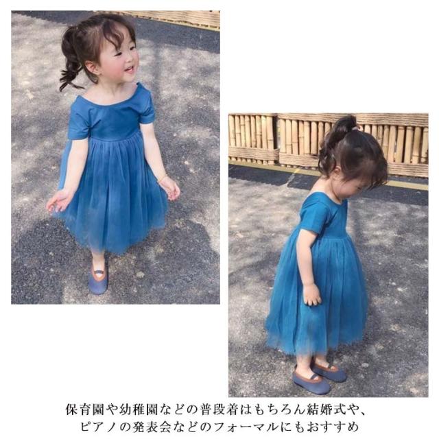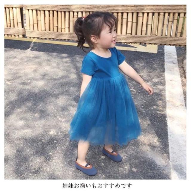 ベビードレス ベビー チュールワンピース キッズ 子供 半袖 ワンピース チュール スカート 背空き 80cm 90cm 100cm 110cm 120cm 130cm フォーマル セレモニードレス 結婚式 発表会 姉妹お揃い 送料無料