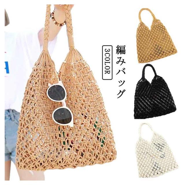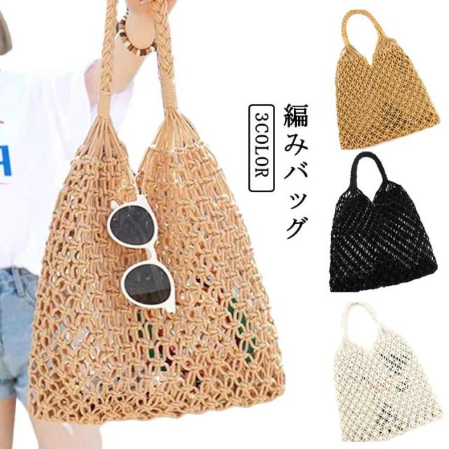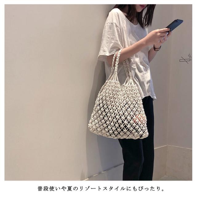 かごバッグ 手編み メッシュ トートバッグ 編みバッグ 大容量 レディース エコバッグ トート 夏バッグ ストローバッグ 可愛い おしゃれ ネットバッグ 手提げ 春夏 春 夏 海 リゾート 送料無料