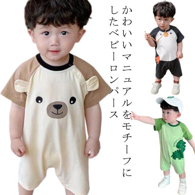 ベビー ロンパース 半袖 カバーオール 綿混 ベビー服 Tシャツ つなぎ 赤ちゃん 新生児 子供服 男の子 女の子 子ども服 こども服 肌着 マニュアル プリント 配色切替 かわいい ユニセックス ルームウェア 部屋着 夏 夏服 通園 出産祝い ギフト 送料無料