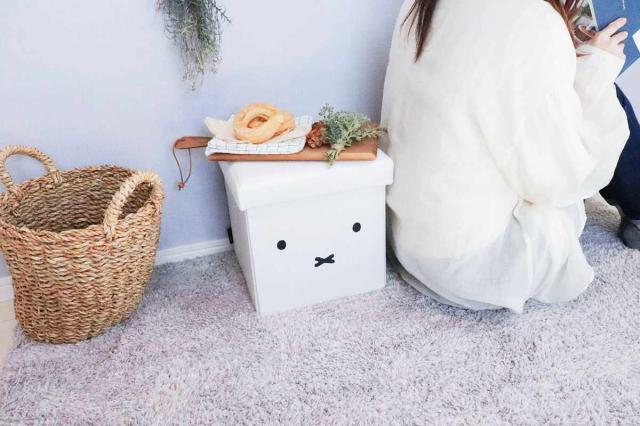 収納ボックス miffy 収納できるスツール ( ミッフィー スツール 収納 折りたたみ 椅子 チェア イス オットマン フタ付き スツールボックス 座れる 収納スツール 足置き いす 1人掛け コンパクト 玄関 おもちゃ箱 サイドテーブル )
