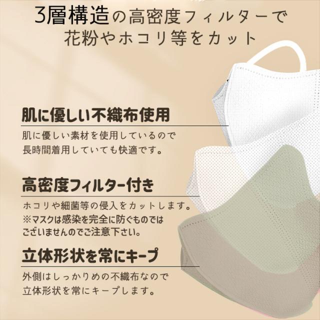 顔にぴったりとフィットする3層構造の立体不織布マスクです