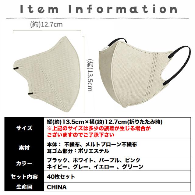 【3D立体デザインで小顔効果有り♪不織布 立体マスク 40枚入り 大人用】