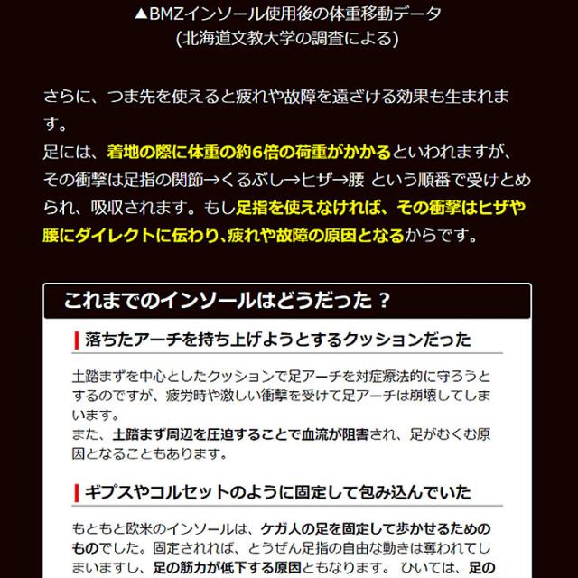 ■はじめてBMZ インソールを使用した場合、下半身が筋肉痛になることがありますが、