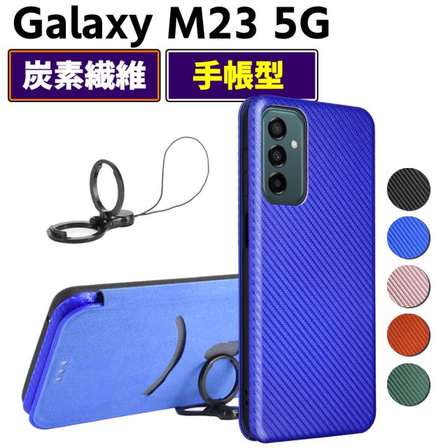 Galaxy M23 5G 手帳型 薄型 カーボンファイバー 炭素繊維カバー TPU 保護バンパー 財布型 マグネット式 カード収納 落下防止 ホルダ 横開き ケースギャラクシーM23
