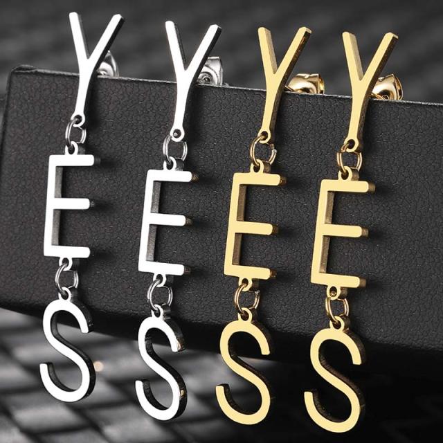 英語のアルファベットでYES(イエス)とデザインしたユニークで個性的ななステンレスピアス。