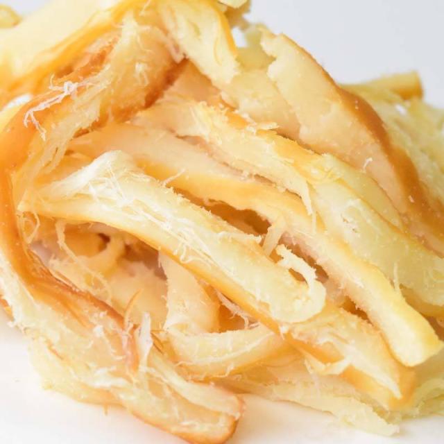 - 味付けが濃いのか、口に含んだ時から噛めば噛むほどの味わい長続きで美味しい。食感もあり噛みごたえも当然ありますね。大きさも手頃で一口はもちろん、裂いても十分楽しめる品ですよ。