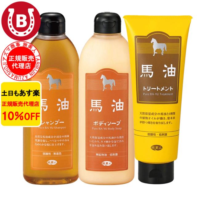 馬油シャンプー 馬油トリートメント 馬油ボディーソープ アズマ商事 ミニサイズ 馬油 シャンプー 旅美人 10%OFF