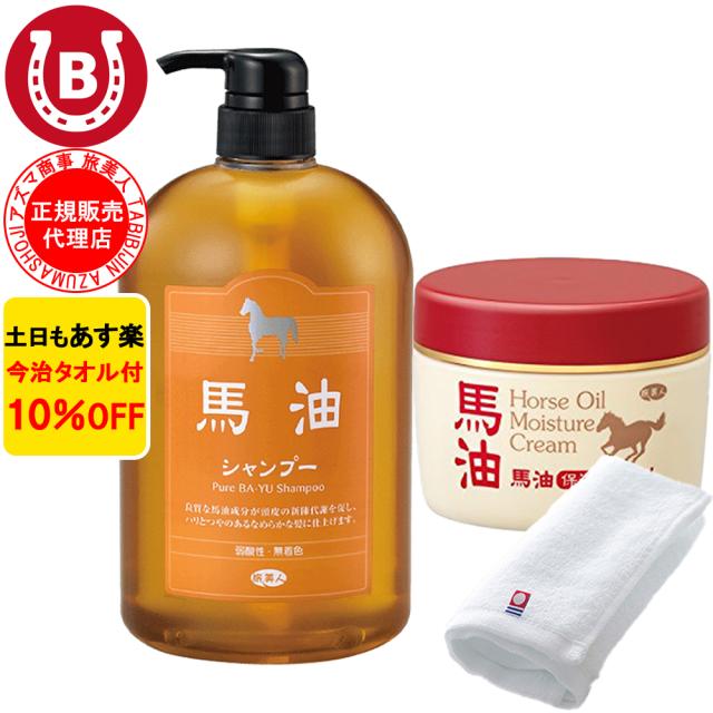 馬油シャンプー & 馬油クリーム アズマ商事 馬油 シャンプー 馬油保湿クリーム ボディクリーム 桜の香り 旅美人 10%OFF 今治タオル付