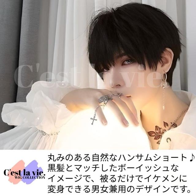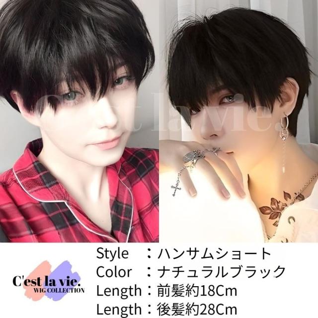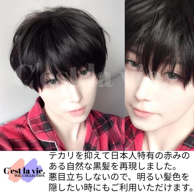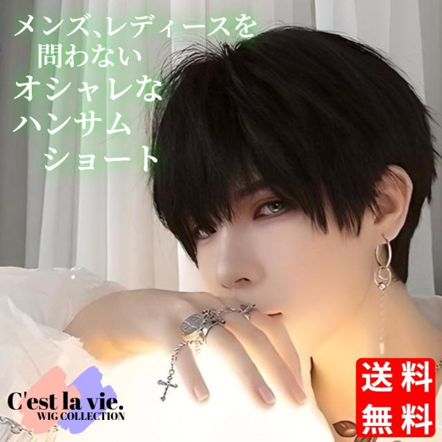 翌日出荷 フルウィッグ ハンサム ショート ナチュラル ブラック 男女兼用 医療用 かつら ネット付き 自然 小顔