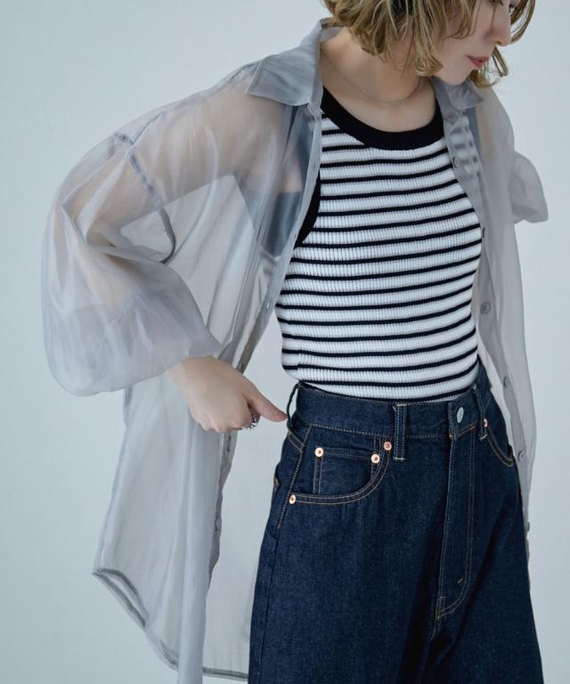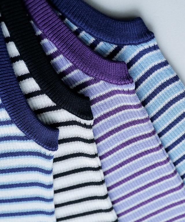 カラフルな配色で差し色や見せインナーとしても優秀なアイテム、シアー、メッシュアイテムの合わせとしてもおすすめです。