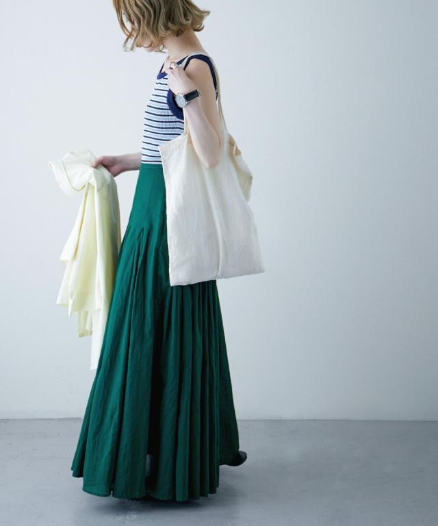 シャリ感ある素材は涼しく、肌あたりも軽やかなので、これからの季節にマスト。