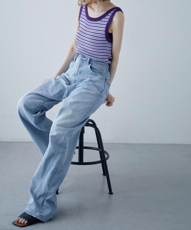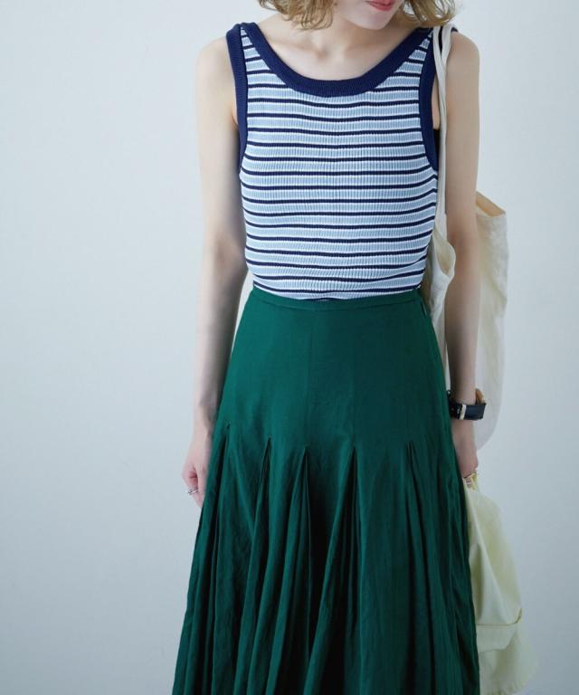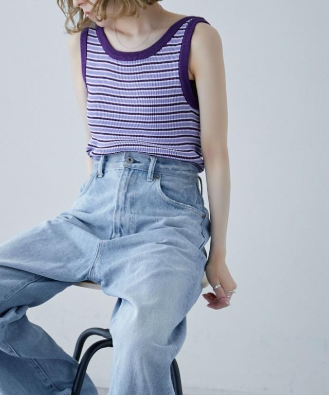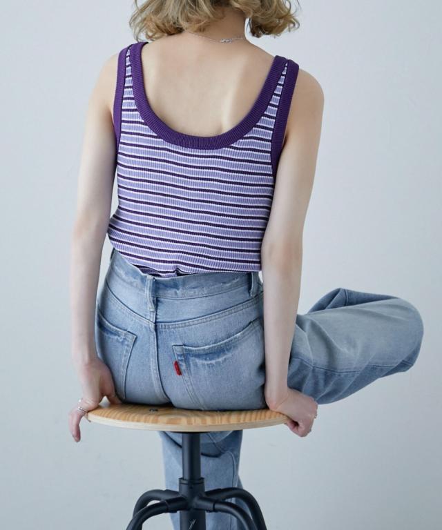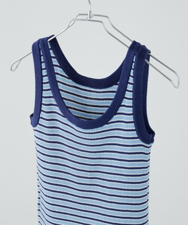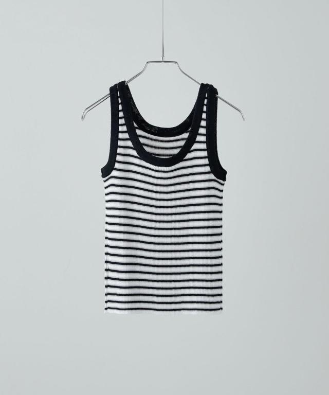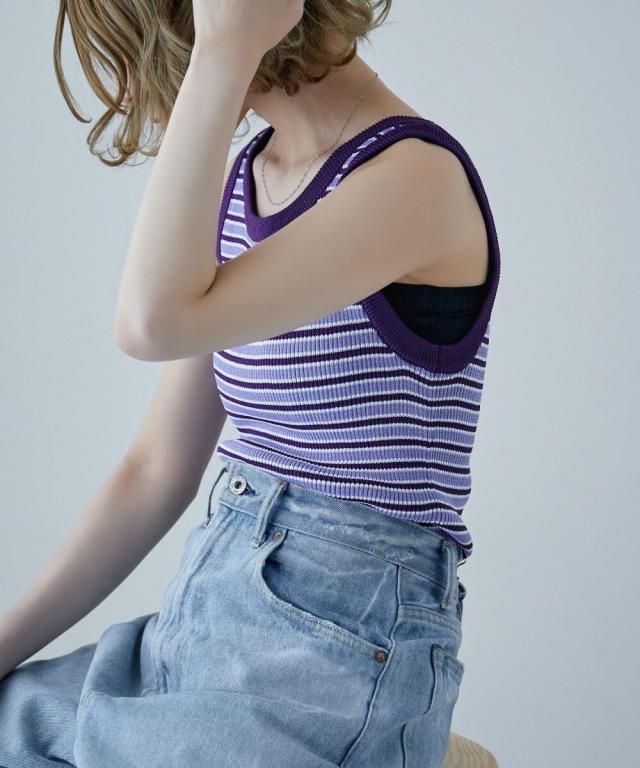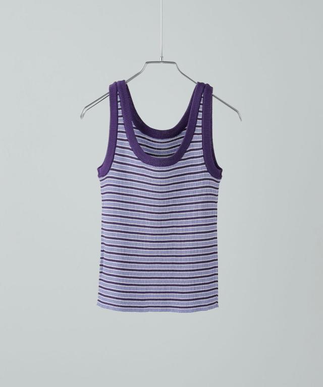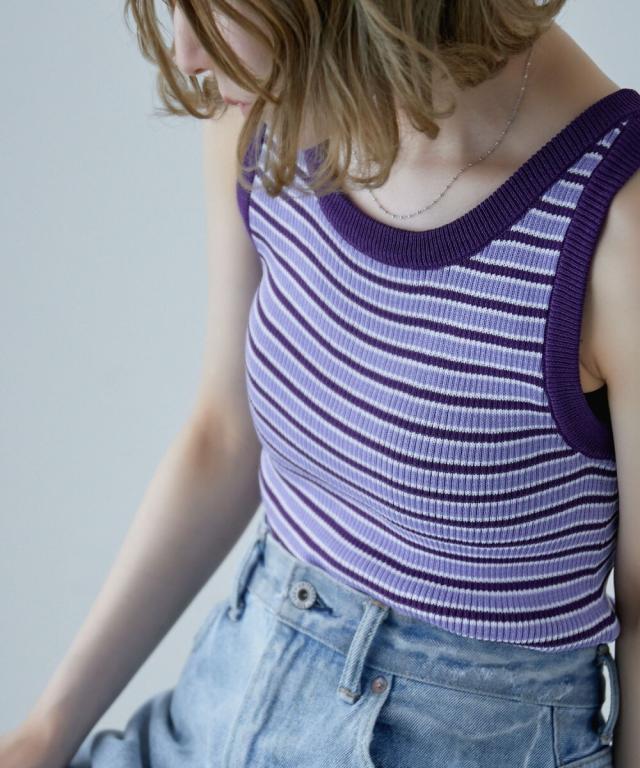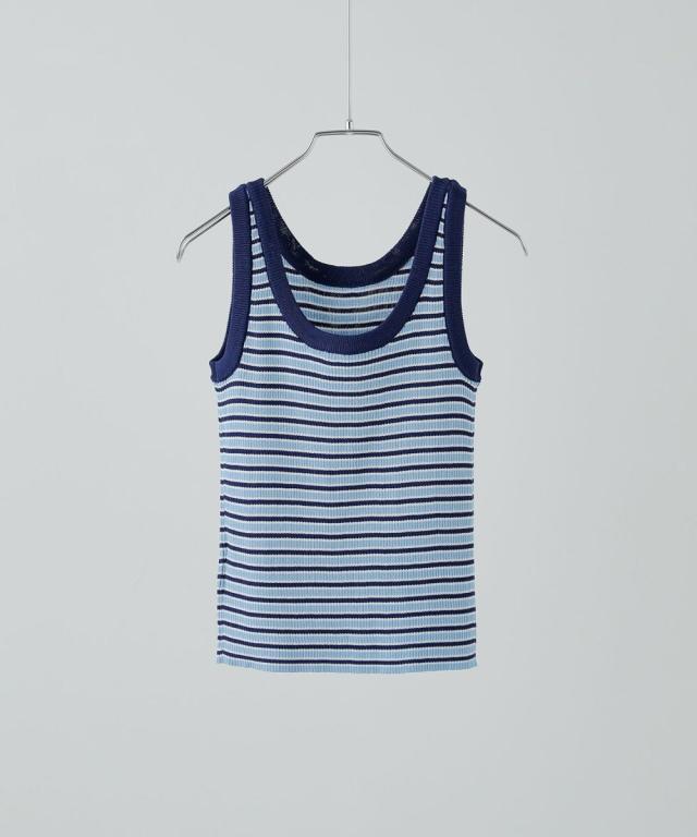 多彩なマルチ柄が目を惹く、リブボーダーのタンクトップ。