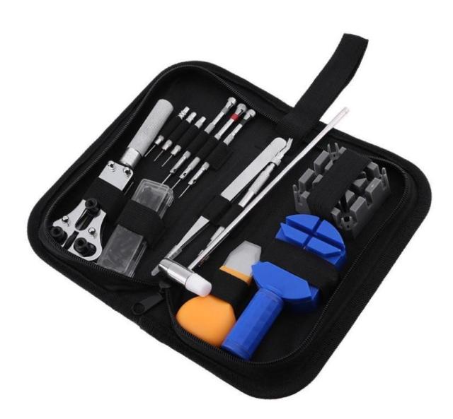 送料690円 腕時計修理工具セット 32点 電池交換 ベルト調整 精密ドライバー 裏蓋開け 交換ピン バネ棒外し