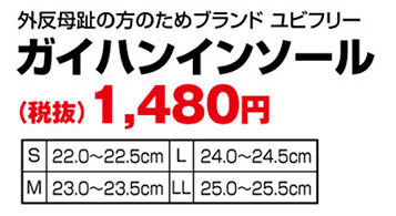 ガイハンインソール 外反母趾対策機能インソール 中敷き 中足骨 足裏 アーチ 持ち上げ サポート S M L LL【メール便送料無料】