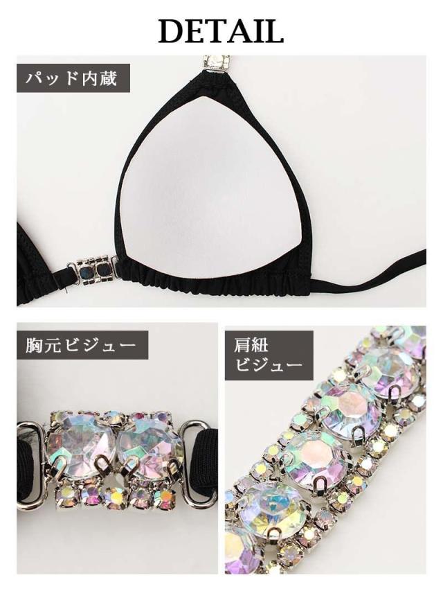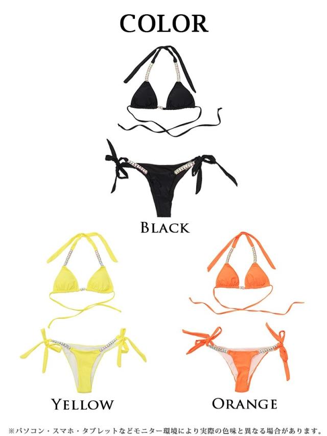 ☆輝くオーロラビジューが目を惹く三角ビキニはシンプルな無地の水着に映えるビジューのギラギラ感がエロ可愛いギャル水着です♪