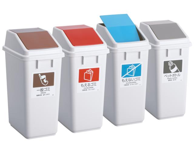 ![]() 分別ゴミ箱 本体 43L | ![]() 分別ゴミ箱 スイング蓋 | ![]() 分別ラベル 一般ゴミ |