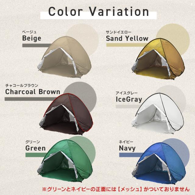 ・高温のものを近づけないでください。 ・テント内で、木炭やガスを使用しないでください。 ・海外製品で、簡易梱包での輸入のため風防に擦れや多少の小キズなどがある場合がございますが、商品自体には問題ありませんのでご了承下さい。 ・グリーンとネイビーの正面には[メッシュ]が付いておりません。 ・商品は、モニターによって色合いが異なって見える場合があります。 ・仕様・デザインは改良のため予告なく変更することがあります。 |