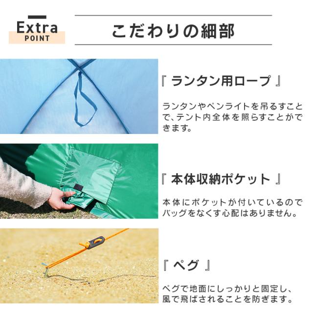 ビーチやピクニック、アウトドアにも最適なポップアップテントです。