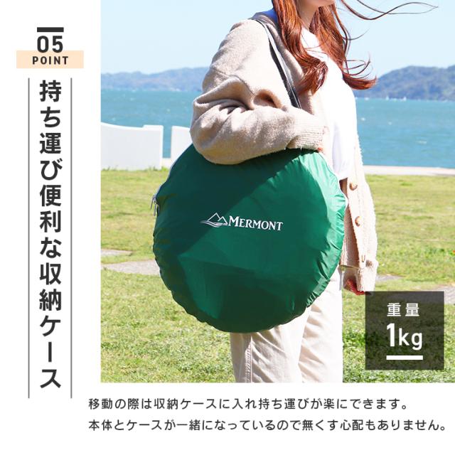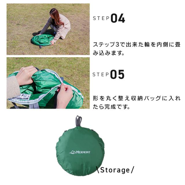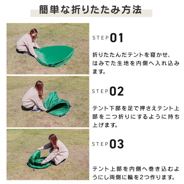 設置はパッと開くだけの組み立て不要!女性でも簡単に設置することができます。
