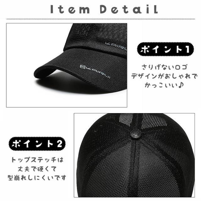 メッシュ素材のため、通気性が抜群のキャップです。