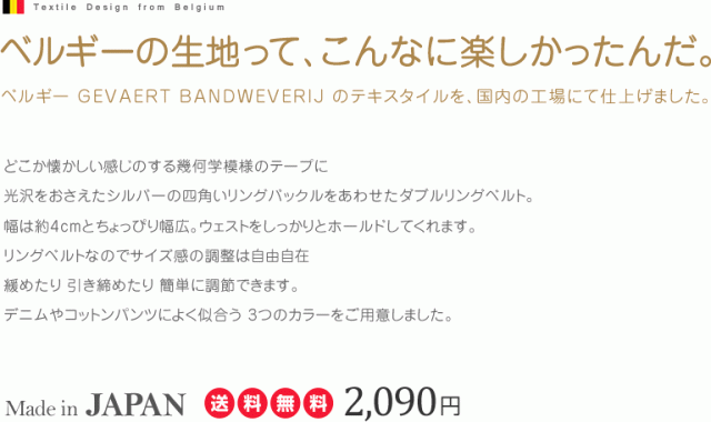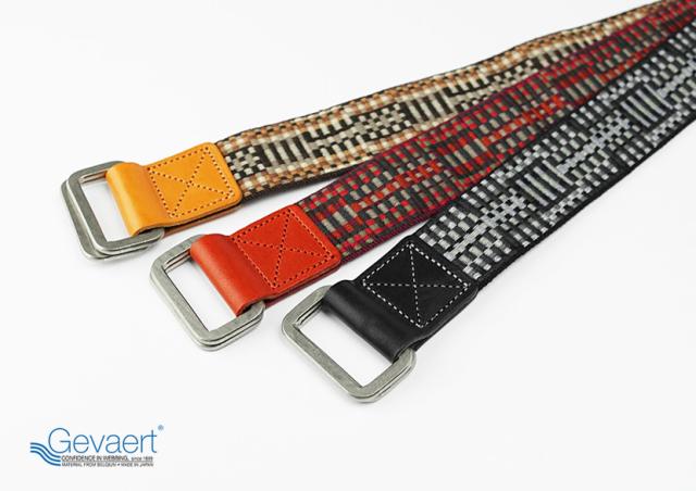 ベルト カジュアル ユニセックス 幾何学模様 ダブルリングベルト Wリングベルト GEVAERT ゲバルト 4.0cm幅