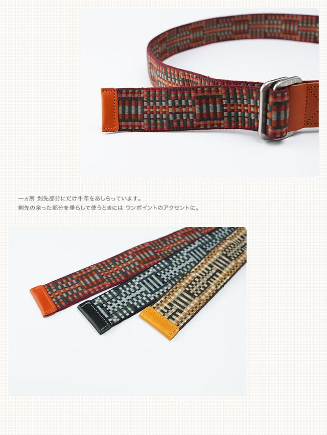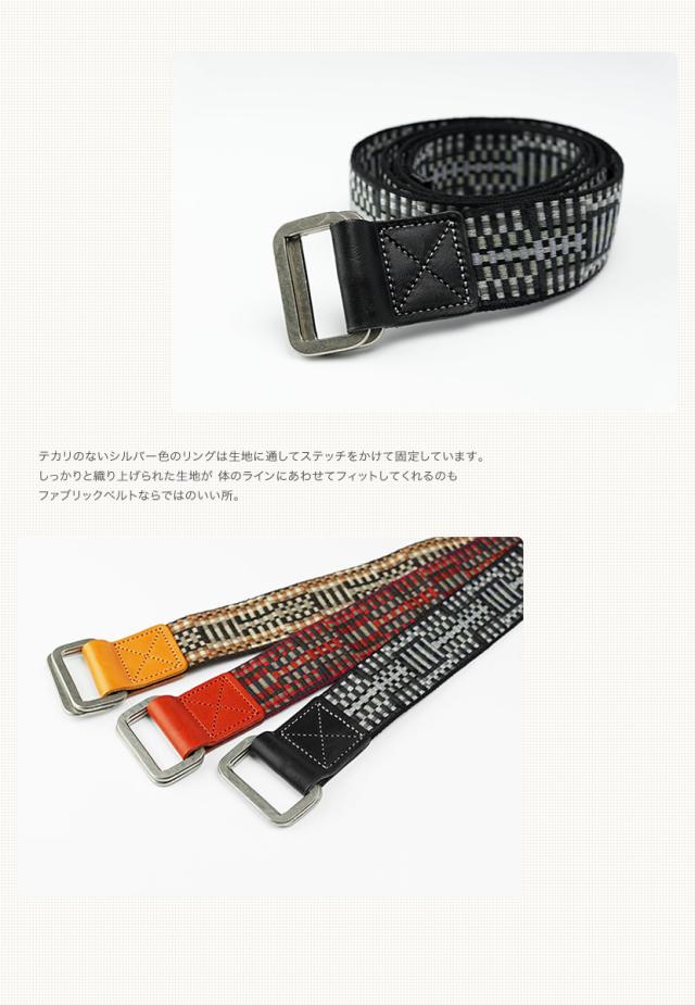 懐かしい雰囲気の幾何学模様に シルバーのリングバックルをあわせた カジュアルなダブルリングベルト。