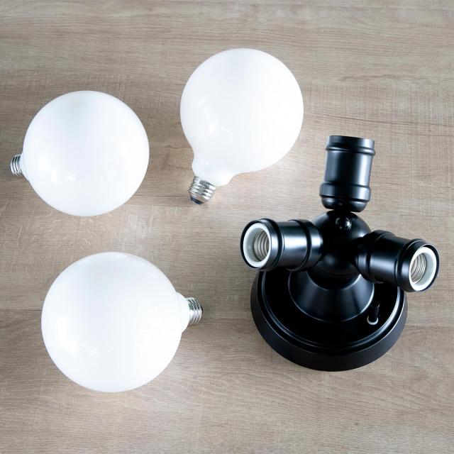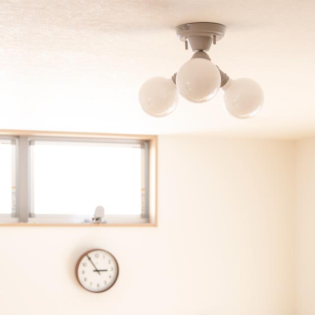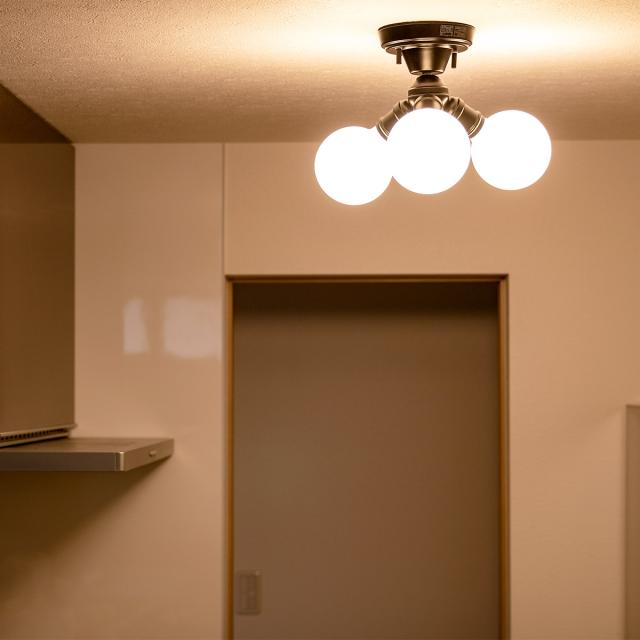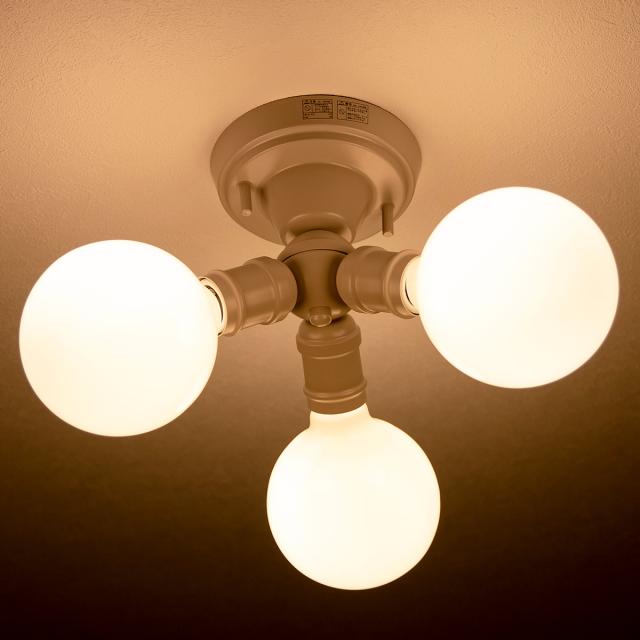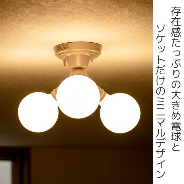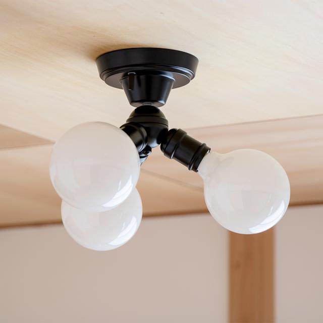 ベーシックなデザインのナチュラルインダストリアルをイメージした3灯のシーリングライトです。存在感抜群のまるくて大きめの電球とソケットだけのミニマルデザインに仕上げました。