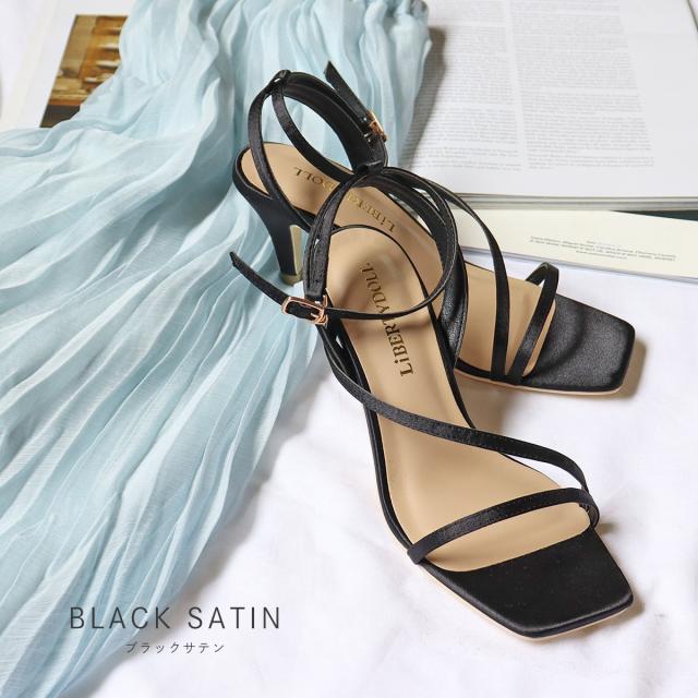 サンダル レディース ストラップサンダル スクエアトゥ 歩きやすい 8cmヒール No.4137 黒 ブラック 白 リバティードール
