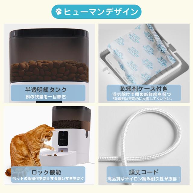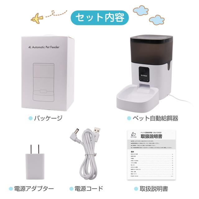 ペット自動給餌器 カメラ搭載 スマホから遠隔操作 自動餌やり機 定時定量 2WAY給電 音声録音機能搭載 4L大容量 日本語取扱説明書付き 【PL保険加入済み製品・安心】