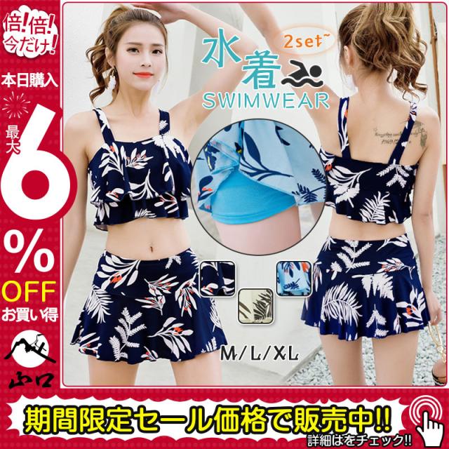 水着 レディース ビキニ 体型カバー 2点セット 上下セット セバレート タンキニ スカート ビーチ 温泉 海水浴 水泳 2022