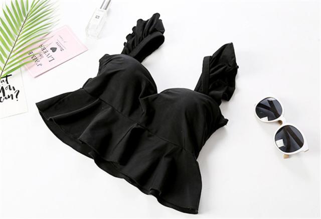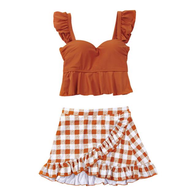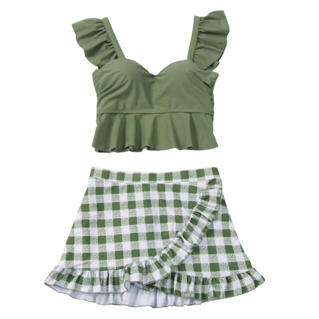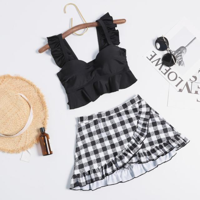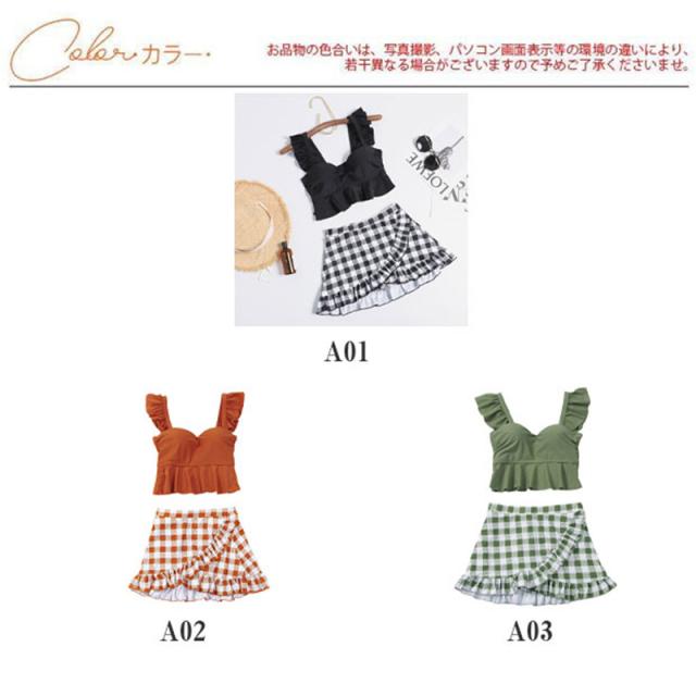 水着 レディース ビキニ ビスチェ風 2点セット ギンガムチェック柄 セバレート タンキニ 温泉 海水浴 水泳 フレア フリル 女