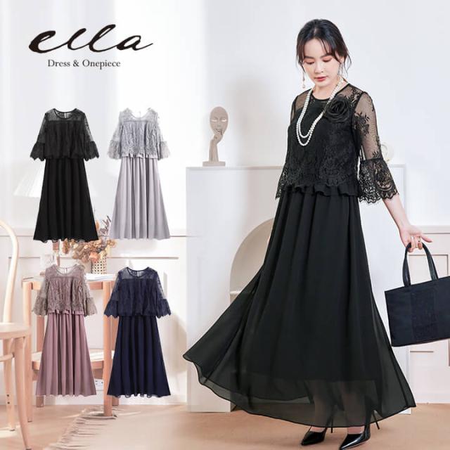 パーティードレス 結婚式 ワンピース 大きいサイズ有 20代 30代 40代 パーティドレス ロング ロングドレス 繊細 レース ロングワンピース レーススリーブ 透け感 華やか ゴム ブラック 黒 グレー 灰 ラベンダー 紫 ネイビー 紺 7号 9号 11号 13号 15号 S M F L XL 2XL