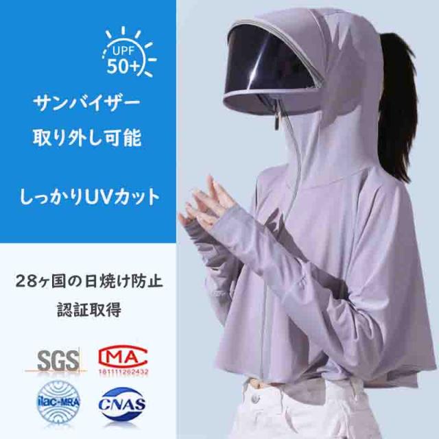 日焼け止め服 レディース 自転車用 バイザー 日除けカバー 長袖 紫外線対策 通気性 サンハット 冷感 速乾