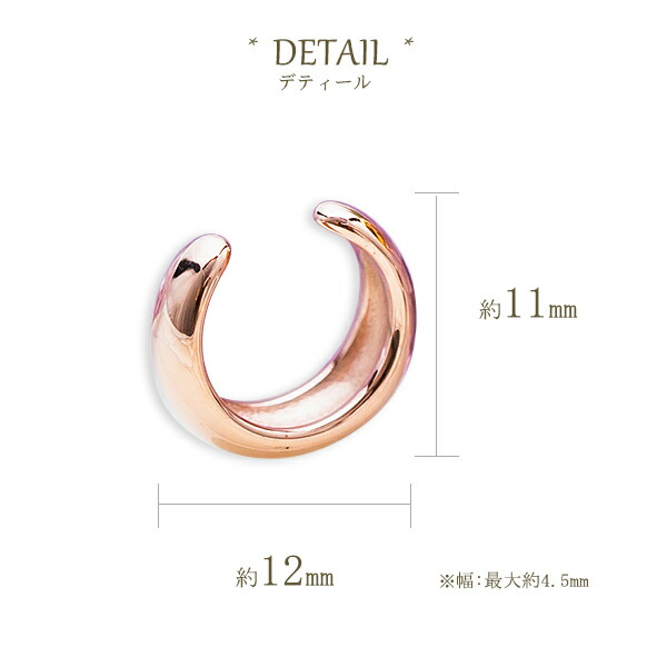 | コメント | 愛らしいジュエリー「henoheno」シリーズ。 ミニマムでプレーンな丸み。軟骨に挟むだけなので、サッと着けられてほかのイヤーカフやピアス・イヤリングとの相性も抜群。シンプルだから女性・男性を問わず、また左右のどちらにでもお使いいただけます。 医療用にも使われてるサージカルステンレス製で肌に優しく、金属アレルギーでアクセサリーをつけられない方にも安心です。シルバーアクセサリーより軽くて丈夫で変色しにくい素材ですので、ティッシュや柔らい布などでサッと拭くだけでいいので、お手入れが簡単です。 注意:お風呂や温泉で変色しにくいですが、外していただく事をおススメいたします。 ※こちらは片耳用で一つでの販売となります。(片耳販売) |