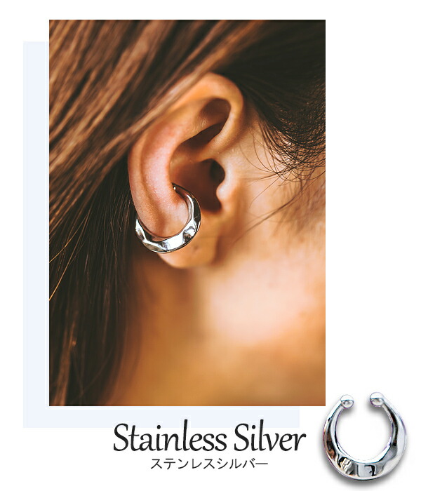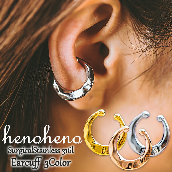 イヤーカフ 槌目 カッコイイ 大人女子 サージカルステンレス 金属アレルギー対応 レディース メンズ イヤーカフス イヤカフ ファッション 重ねづけ 女性 ウェアリング 軟骨 ノンホール イヤリング 片耳用 大人 シンプル henoheno ブランド